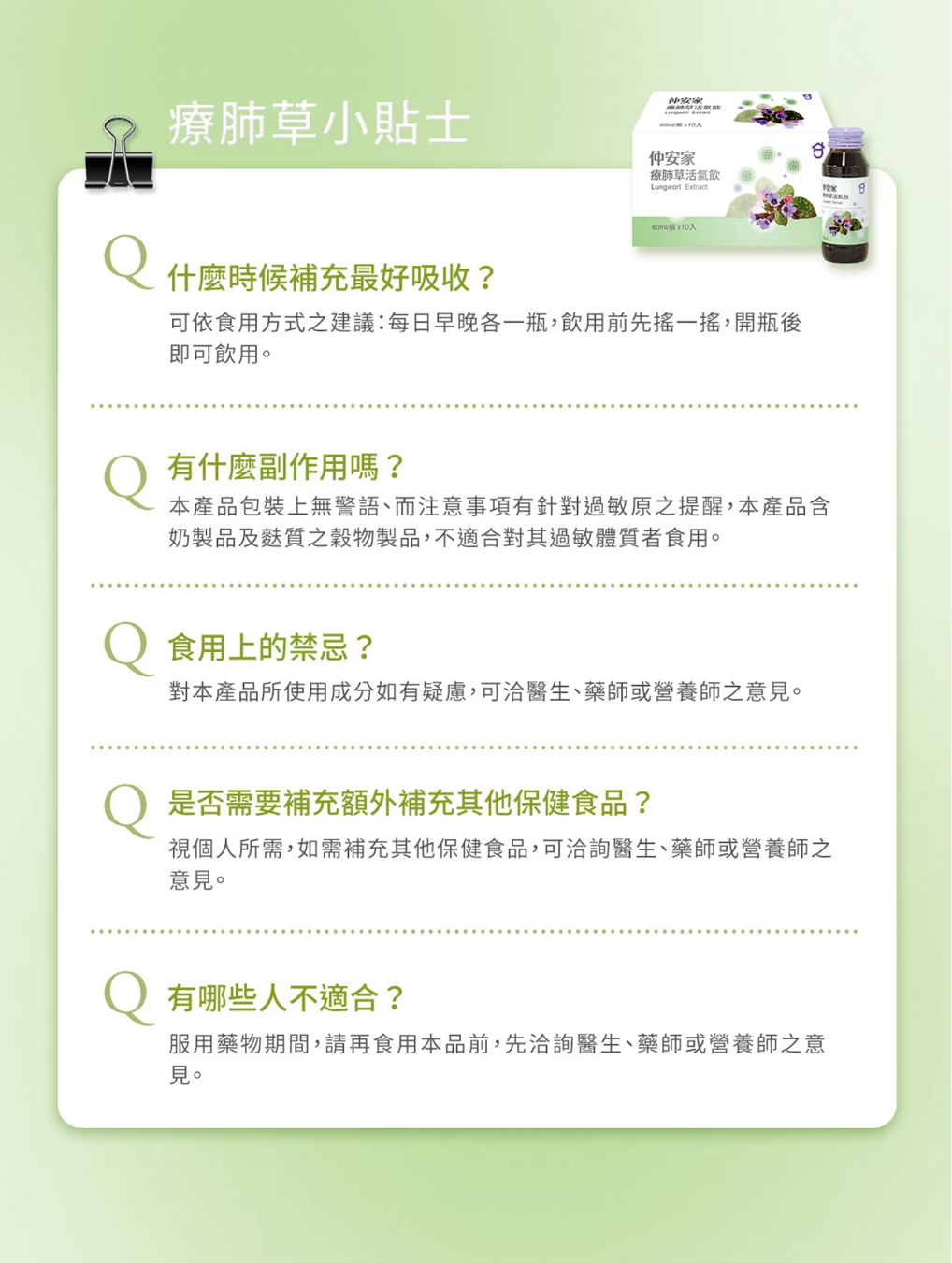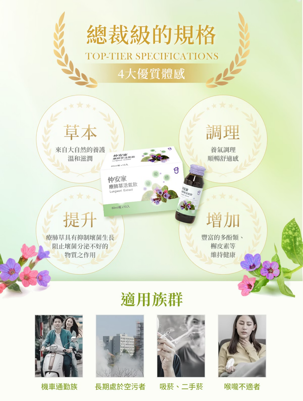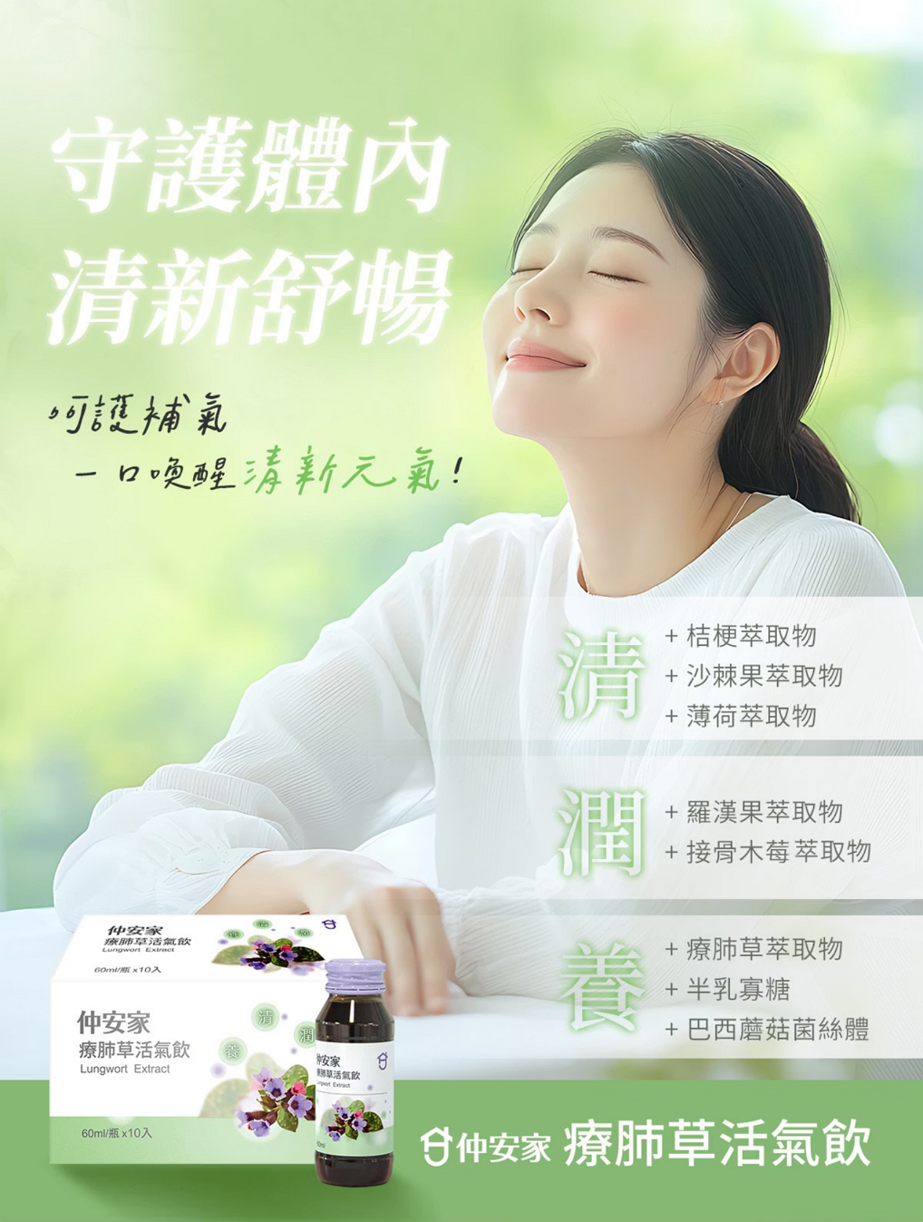 以「療肺草 × 草本精華 × 日常調理配方」打造順暢呼吸的保養飲品,讓你在季節變換或環境敏感時依然維持舒適好狀態!