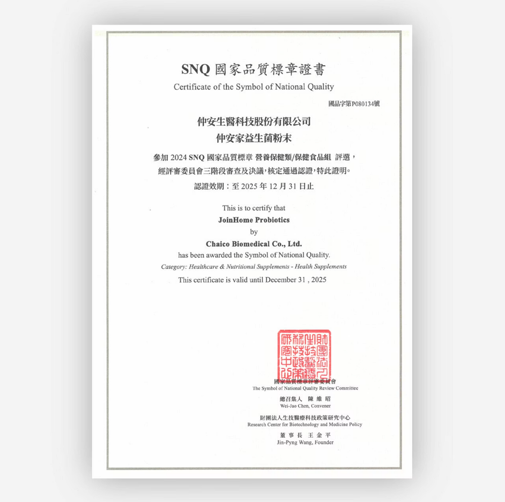 SNQ認證標章 十大人體原生菌種 植物菌種 專利抗氧化包埋技術