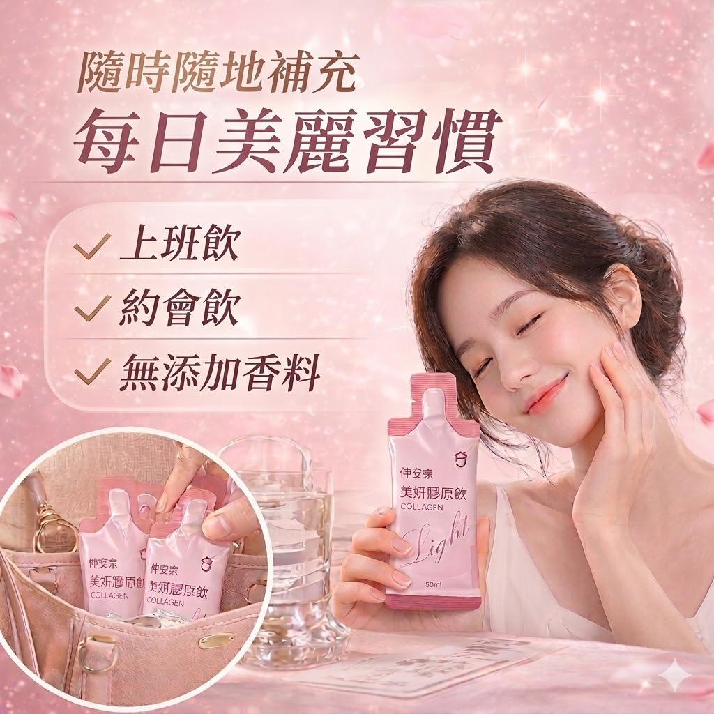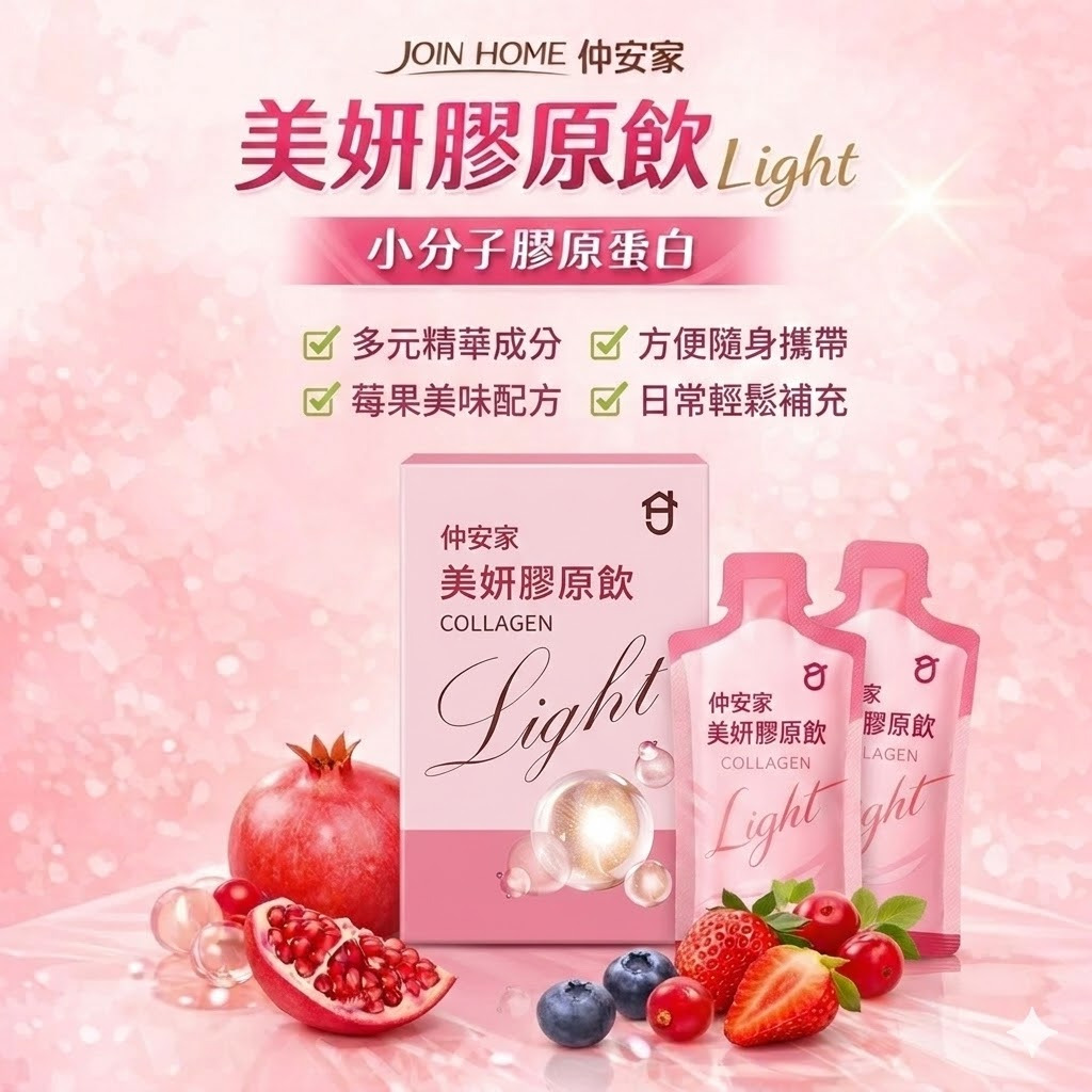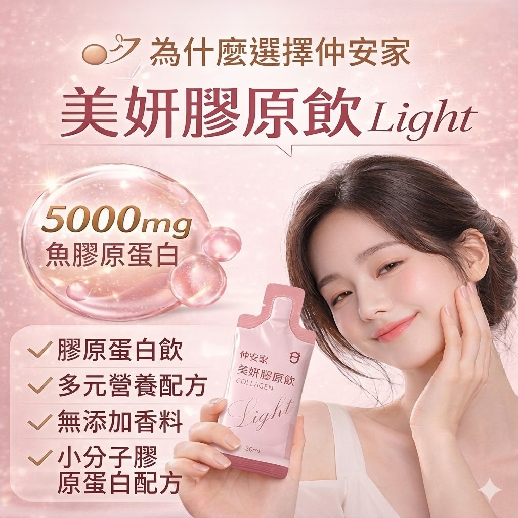 #仲安家 #美妍膠原飲 #膠原蛋白 #美白亮膚 #輕卡保養 #彈潤補給 #美容飲 #樂享家