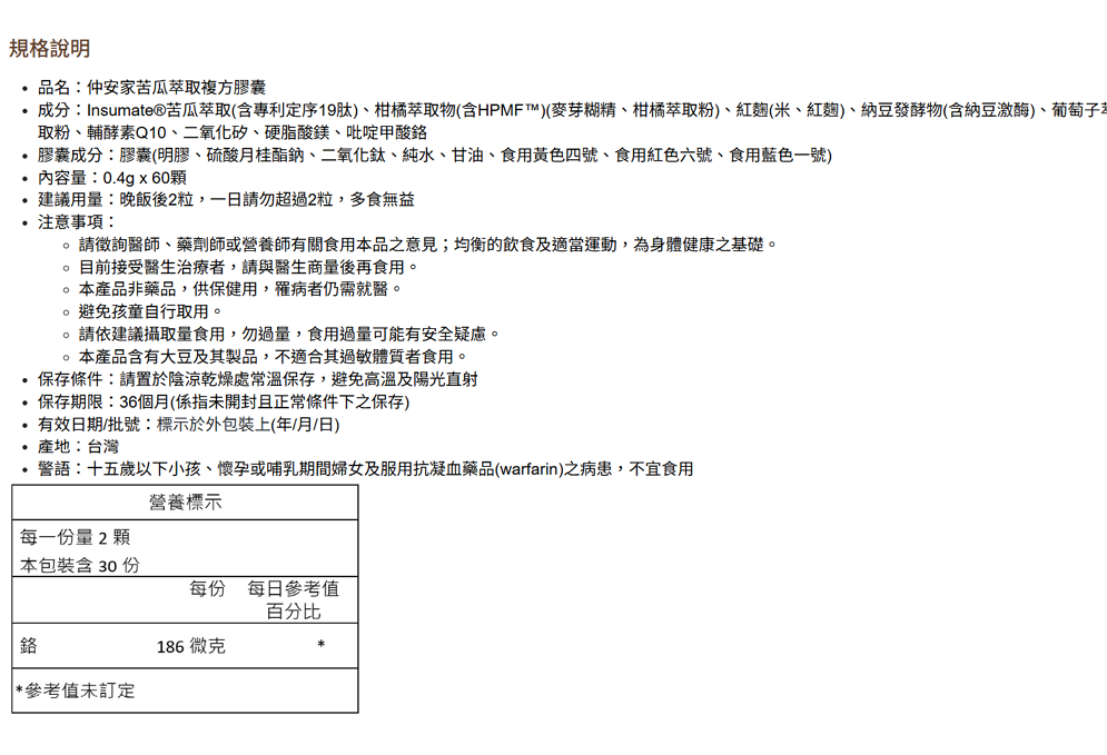 ・主要成分:苦瓜胜肽、紅麴、植萃成分