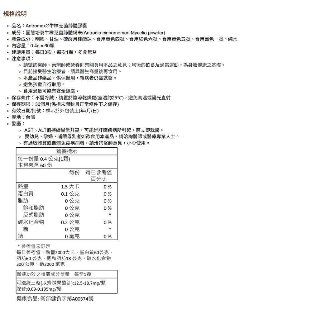 Antromax® 為牛樟芝菌絲體之註冊商標名稱(®),