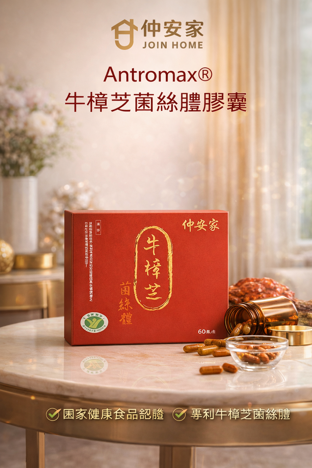 仲安家 JOINHOME Antromax® 牛樟芝菌絲體膠囊 60顆/盒