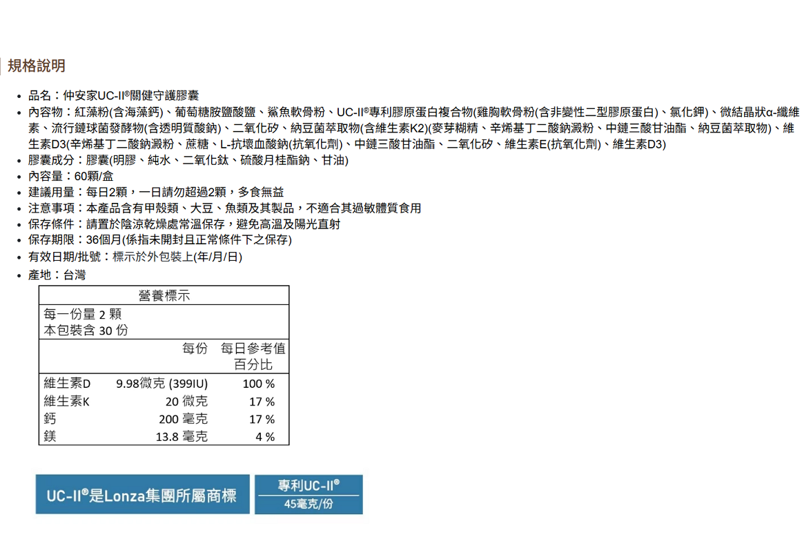 🔥💪 【仲安家】UC-II® 關健守護 60顆/盒