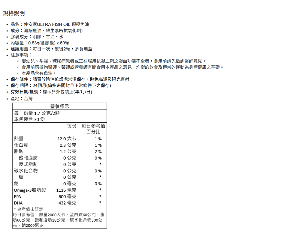 🔥🐟 【仲安家】ULTRA FISH OIL 頂極魚油 60顆/盒