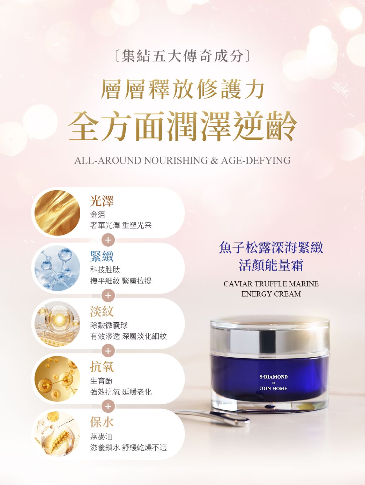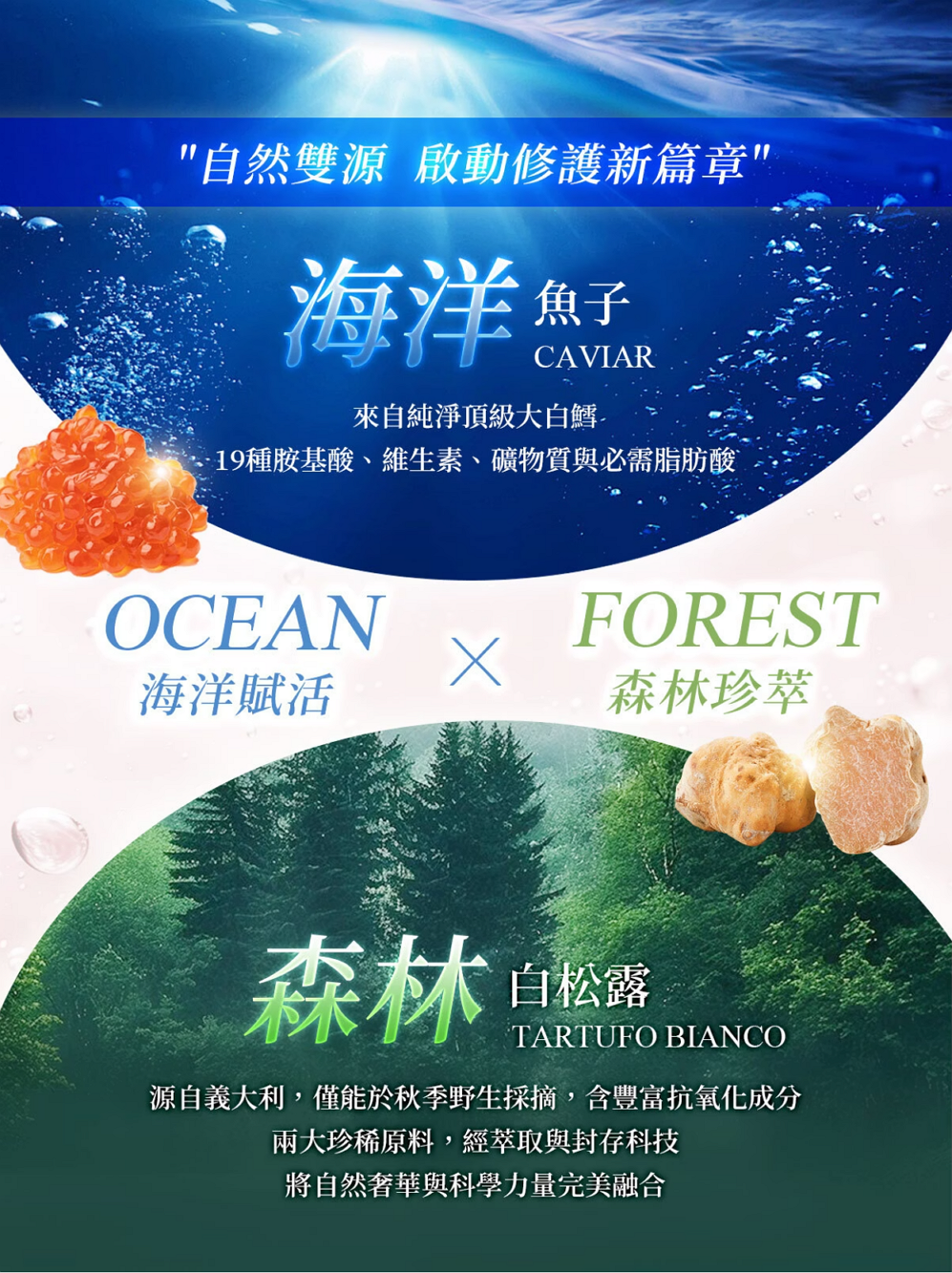 專利科技胜肽 黃金金箔 高效補水 白松露萃取 鱘魚子