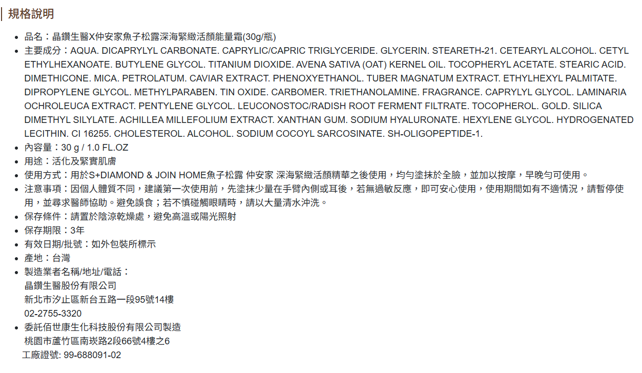 #晶鑽生醫 #仲安家 #魚子松露 #活顏能量霜 #保濕亮膚 #深海修護 #彈力提升 #樂享家