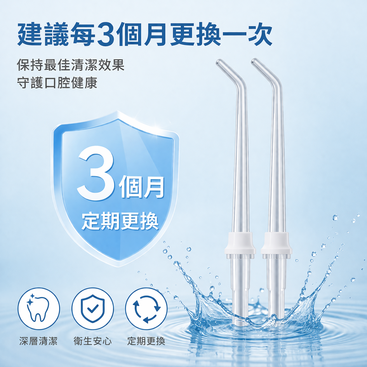 建議依個人使用習慣定期更換,並保持噴頭清潔與乾燥。